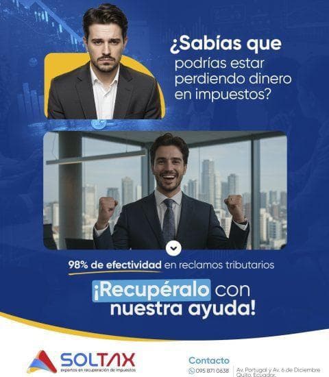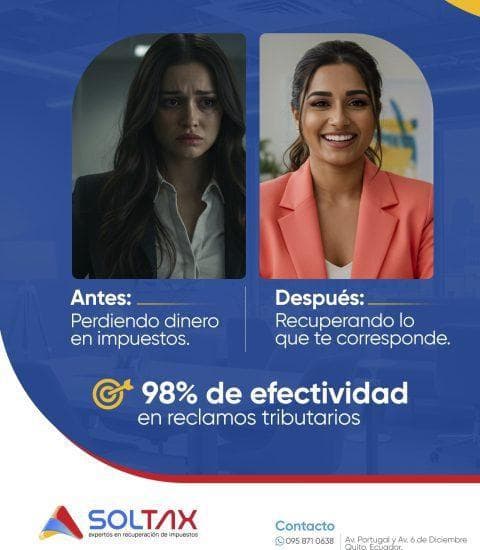 En Soltax, somos expertos en recuperación de impuestos en Ecuador y en asesoría contable, tributaria y financiera. Con más de 15 años de experiencia, hemos ayudado a cientos de empresas y personas a optimizar su carga tributaria y mejorar su liquidez.